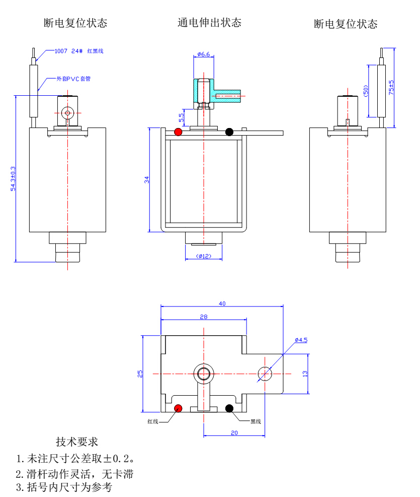 一、汽車(chē)波箱換擋器電磁鐵的尺寸圖: