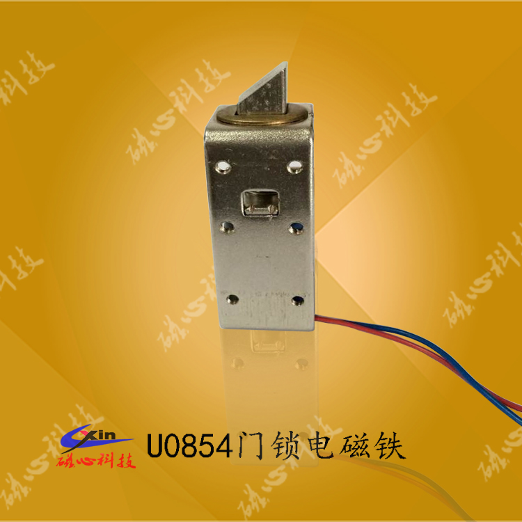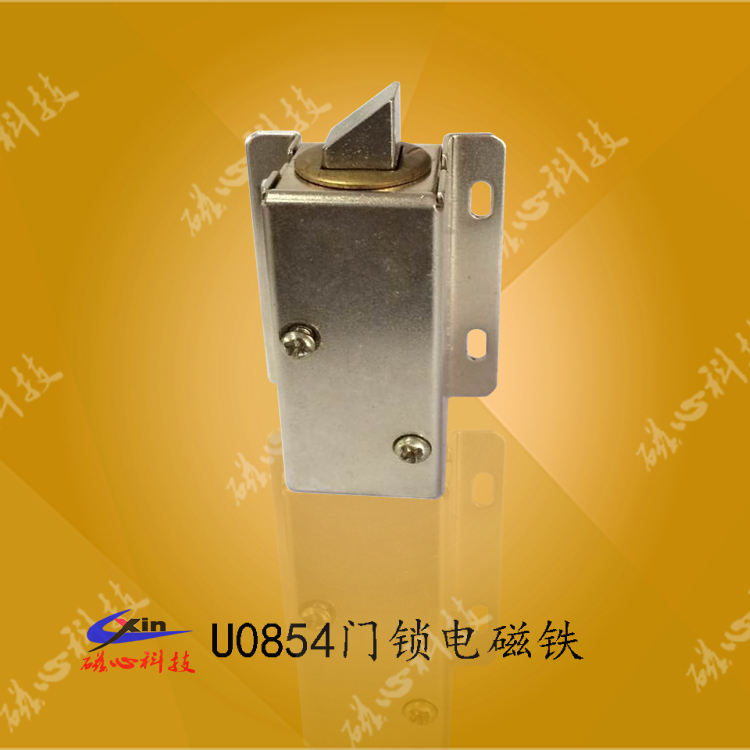 是由框架式電磁鐵U1350為主體,另外加裝安裝支架和鎖石以及復位彈簧等部件組成的一個門鎖電磁鐵