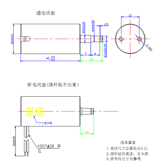 圓管式電磁鐵T2040 是電磁鐵廠家研發(fā)、設(shè)計(jì)的一款內(nèi)置彈簧的推拉式電磁鐵,在不影響產(chǎn)品性能的前提下,把復(fù)位彈簧內(nèi)置,有效的節(jié)省了電磁鐵整體尺寸,提升了客戶空間的使用