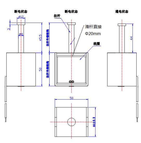 產品尺寸:50*50*44 (mm)具體尺寸如下圖: