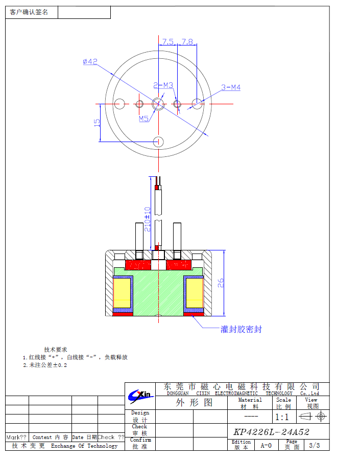 自保持吸盤(pán)電磁鐵KP4226,又稱(chēng)為失電電磁鐵,就是電磁鐵在短電狀態(tài)下有磁性,通電消磁,然后再斷電有具有磁性的一款自保持吸盤(pán)電磁鐵。