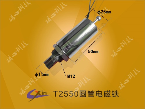 東莞磁心科技電磁鐵廠家,批量生產T2550圓管電磁鐵。公司位于東莞市,大批量制造圓管式電磁鐵、推拉式電磁鐵、吸盤式電磁鐵、旋轉式電磁鐵等,生產的T2550圓管式行程長、力量適中廣泛用于自動化和紡織機械產品上。