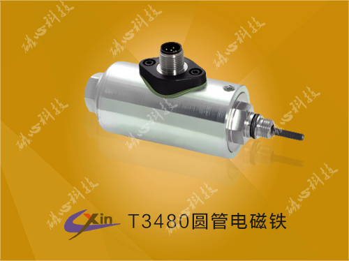 T3480圓管電磁鐵是電磁鐵廠家針對客戶專門定制的一款微型推拉式電磁鐵,產品的直徑34mm,高度80mm,采用內置彈簧,可以自動復位。電磁鐵外殼采用高精度CNC加工成型,出